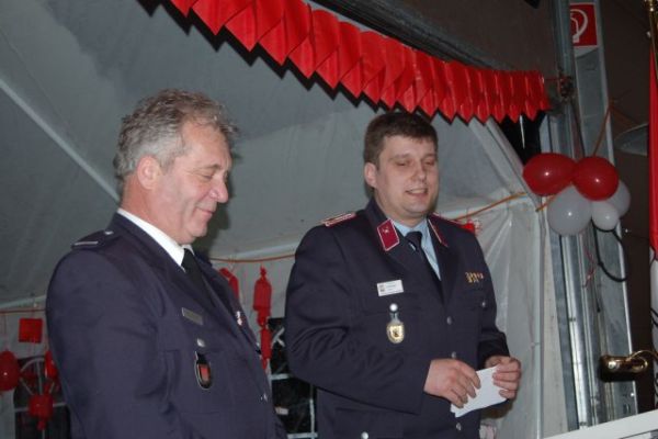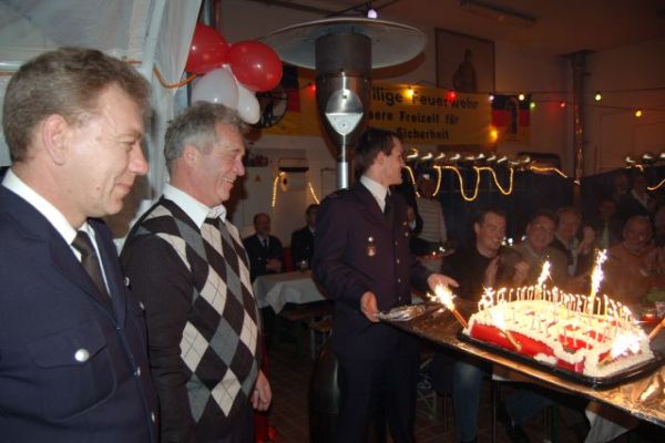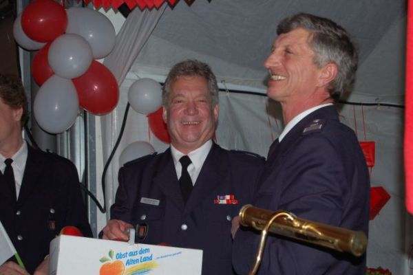 Nach dem offiziellen Teil und der Beförderung zum Leiter der Ehrenabteilung feierte der Jubilar in seinen 60. Geburtstag, zu dem er vom anderen Geburtstagskind des Tages und gelerntem Koch, dem Kameraden der Einsatzabteilung Kai-Uwe Schütt eine große Torte überreicht bekam. Gar nicht wie ein Ruheständler feierte Hagemann dann mit seinen Gästen bis in den frühen Morgen.