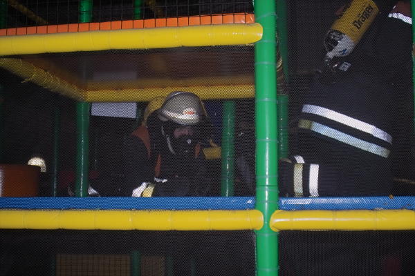 Grundlagen für umfassende PA-Belastungsübungen müssen nicht immer die ausgeklügelsten Übungen an den verwinkelsten Objekten sein. Das zeigte die FF Osdorf mit dem vom Übungsleiter gewählten Objekt, dem Indoor-Kinderspielplatz "Rabatzz!" in Hamburg-Stellingen.