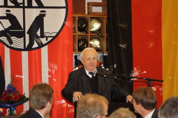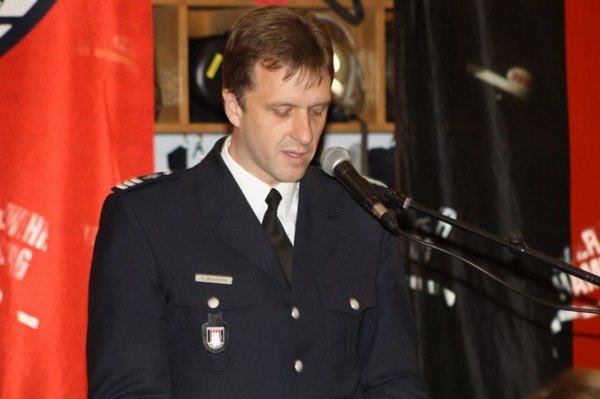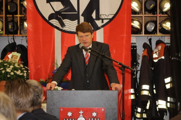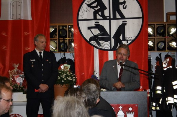 Da das Geschehen von 125 Jahren Freiwilliger Feuerwehr natürlich reichlich Erwähnenswertes, auch Anekdotenhaftes zu bieten hat, was sich die Redner auf recht unterschiedliche, teils sehr unterhaltsame Weise zunutze machen wussten, seien hier nur einige wesentliche Punkte hervorgehoben. So wurde beispielsweise erwähnt, dass die Idee, welche vor 125 Jahren ein kleiner Kreis Bergstedter Bürger hatte, nämlich eine ehrenamtliche Feuerwehr zwecks gegenseitiger Hilfe ins Leben zu rufen, nichts an Modernität eingebüßt habe, handele es sich doch um ein Modell, das in unterschiedlichster Erscheinungsform bis heute immer wieder Karriere gemacht habe. Damit einhergehend wurde abermals auf die soziale Rolle der Stadtteilfeuerwehren eingegangen, welche durch ihre Veranstaltungen und Feste einen prägenden Platz im gesellschaftlichen Gefüge einnehmen würden; insbesondere fand die Nachwuchsarbeit im Rahmen der Jugendfeuerwehr, die es seit inzwischen gut zwei Jahren auch in Bergstedt gibt, viele lobende Worte. Dass dies alles selbstverständlich nicht nur viel Arbeit seitens der Wehrangehörigen, sondern eine ebensolche Akzeptanz der Partner und Familien zu Hause voraussetze, wurde anerkennend und dankend angesprochen. Doch auch Kritisches fand seinen Weg in Abschnitte manch einer Rede, indem vor Augen geführt wurde, dass den Zielen, die man sich setze, sei es als einzelne FF oder die FF Hamburg insgesamt, nicht selten Hürden entgegengesetzt würden, die entweder durch Kraft und Willen zu nehmen seien oder aber letztendlich nur durch Eigenleistung, die weit über den eigentlichen Bereich dieses Ehrenamtes hinausgehe. Letzteres sei der FF Bergstedt in vorbildlicher Weise im letzten Jahr im Rahmen der Renovierung des Feuerwehrhauses gelungen, als das Mitte der siebziger Jahre errichtete Gebäude einen Anbau und eine Wärmeschutzisolierung bekam und große Teile der Innenarbeiten in Eigenregie durchgeführt wurden. Alles in allem konnte ein durchweg positives Fazit gezogen werden, welches allenthalben zuversichtlich und mutig stimmen sollte, aus der Zeit seit 1885 nicht die Asche, sondern, in Erwartung der sich stellenden Herausforderungen, das Feuer für die nächsten 125 Jahre zu übernehmen!