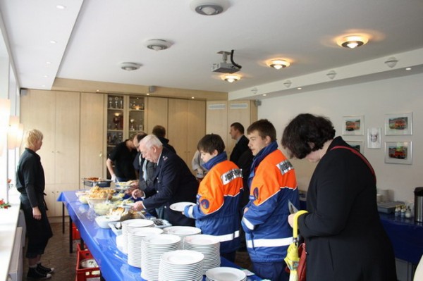 Nach Abschluss des offiziellen Teiles, immer wieder ausgeschmückt und musikalisch untermalt vom Musikzug der FF Hummelsbüttel, wurde das Büffet eröffnet, wo es Spanferkel und eine bunte Beilagenauswahl gab. Nachdem dieser Teil der Feierlichkeiten ausgeklungen war, traf man sich am Abend im Kreise der Wehr mit Angehörigen und Freunden sowie weiteren Gästen aus dem Bereich, um in geschlossenem Kreise das Jubiläum bei Musik, Tanz und abermals diversen Leckereien bis in die Nacht hinein zu begehen.