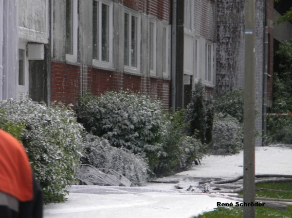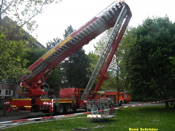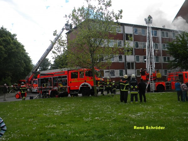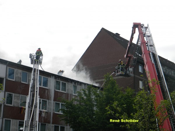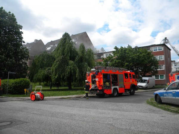Am 1. Juni kam es in den Mittagsstunden, vermutlich ausgelöst durch Dachdeckerarbeiten zum Brand des Daches eines viergeschossigen Mehrfamilienhauses in Hamburg-Kirchsteinbek.