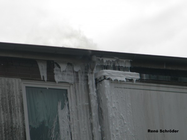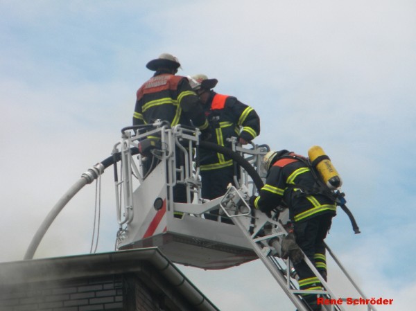 Um abschließend auch letzte Glutnester abzulöschen, wurde das komplette Dach durch die Feuerwehr aufgenommen. Dabei waren die unter Atemschutz eingesetzten Kameraden durch die Absturzsicherung vor einem Abstürzen, auf dem, durch das Schaummittel in eine Rutschbahn verwandelte Dach, geschützt. Die ebenso hinzugezogene Freiwillige Feuerwehr Warwisch mit der Sonderkomponente Technische Hilfe unterstützte mit ihrem technischen Gerät die Nachlöscharbeiten.
