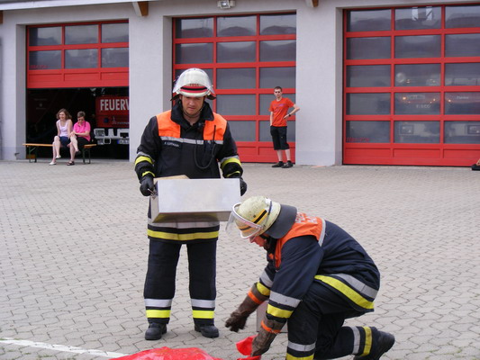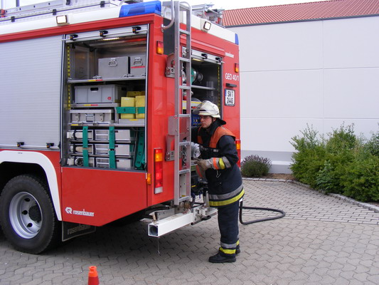 Bereits in Hamburg hat sich die FF Lokstedt ausführlich auf diese Übung vorbereitet. Allerdings wurde auch am Freitag und am Samstagvormittag nochmals in Gerolzhofen geübt um das Fahrzeug der Abnahme (ein HLF 20/16 der FFW Gerolzhofen) kennen zu lernen, welches sich doch in einigen Details vom bekannten Hamburger Fahrzeug unterscheidet.
