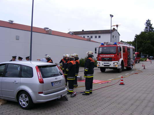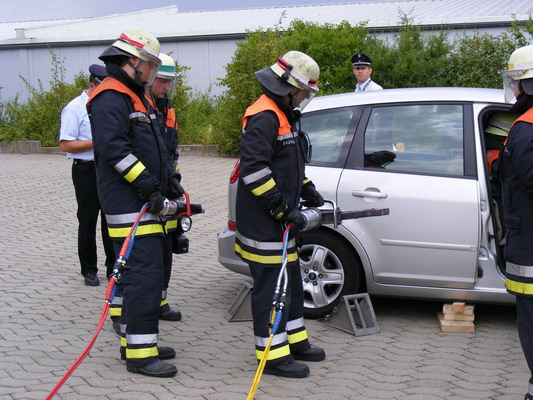 Das Leistungsabzeichen beinhaltet eine Einsatzübung nach FwDV 3. Angenommen Lage war ein Verkehrsunfall bei dem der Fahrer im Fußbereich eingeklemmt ist.