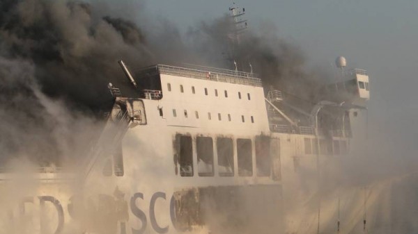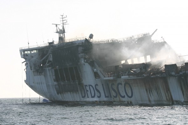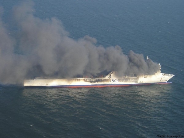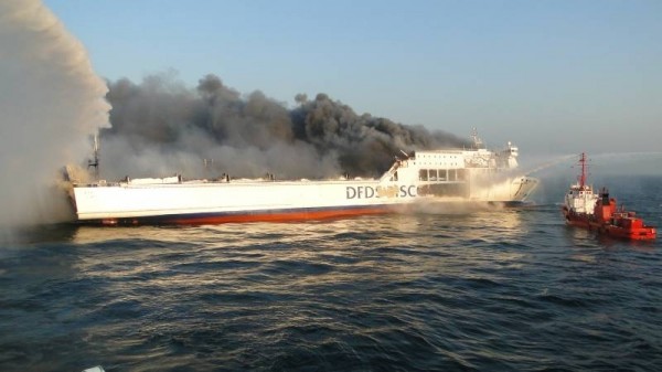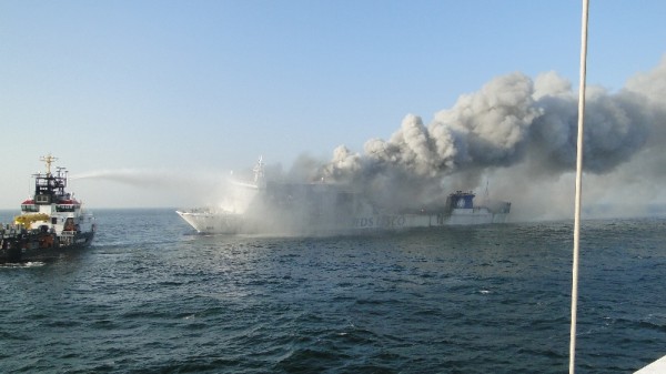 Inzwischen sind zusätzlich zu den Bergungsspezialisten die Feuerwehrkräfte von Smit Salvage eingetroffen, einer niederländischen Bergungsfirma, die von der Reederei DFDS den Bergungsauftrag erhaltender hat.