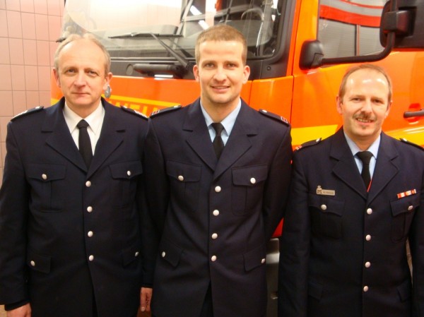 Zu den ersten Gratulanten zählten Bereichsführer Rolf Lohse, Wehrführer Andreas Hesse und der bisherige Wehrführer-Vertreter Thomas Schwarz.