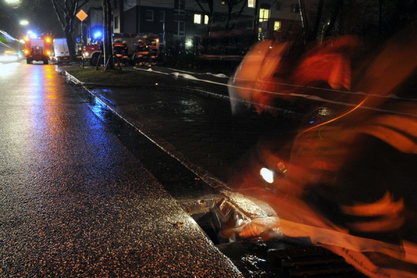 Weil die Abläufe am Straßenrand die Wassermassen nicht mehr aufnehmen konnten, musste die Manshardtstraße komplett für den Verkehr gesperrt werden. Es wurde direkt in die Kanalisation gepumpt. Nach 4 Stunden war der Wasserstand niedrig genug, um den Kleingartenverein ohne gleich nasse Füße zu bekommen betreten zu können. Ein Trupp lief den kleinen Wassergraben ab und entdeckte die mögliche Quelle der Wassermassen. Eine geplatzte Wasserleitung wollten die Wasserwerke vorerst ausschließen und erklärten, dass das Grundwasser durch den ständigen Regen anstieg und dort hervor kam.
