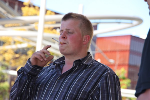 Patrick, nach 2 Stunden Reanimation erstmal genüsslich was für die Lunge tun. Foto: Wolfgang Häcker
