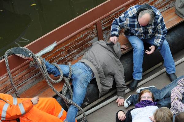 Zur gleichen Zeit warteten einige Journalisten und Beobachter bereits gespannt an der Schleuse Tiefstack, dem späteren Einsatzort. Innensenator Michael Neumann war ebenfalls eingeladen, sich die Übung vor Ort anzuschauen und gegen 10 Uhr das Startsignal zu geben.