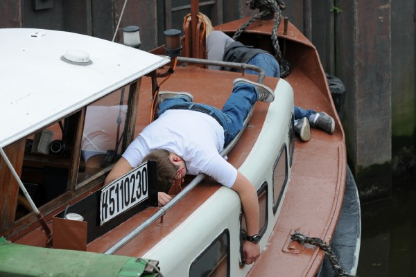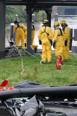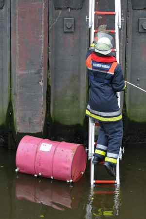 Eine weitere Aufgabe des Technischen Hilfswerk war das Aufnehmen des ausgelaufenen Öls und dem Bergen im Wasser treibenden Fässer.