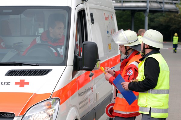 … des Arbeiter-Samariter-Bund (ASB), dem Deutschem Roten Kreuz (DRK), der Deutschen Lebens-Rettungs-Gesellschaft (DLRG), der Freiwilligen Feuerwehr, der Johanniter-Unfall-Hilfe e.V. (JUH), dem Malteser Hilfsdienst (MHD) und dem Technischen Hilfswerk (THW) im Bereitstellungsraum an der Andreas-Meyer-Straße in Billbrook.