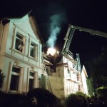 Daraufhin wurden vom Zugführer weitere Einsatzkräfte nachgefordert. Im weiteren Verlauf wurde des Dach mit mehreren Kettensägen geöffnet, um eventuelle Glutnester ablöschen zu können. Aufgrund der großen Wassermassen des Löschangriffs sowie der Beeinträchtigung der Bausubstanz durch das Feuer, bestand für das Gebäude aktute Einsturzgefahr. Daraufhin konnten sämtliche Lösch- und ARbeitsmaßnahmen nur über DL- und TMF-Korb erfolgen.
