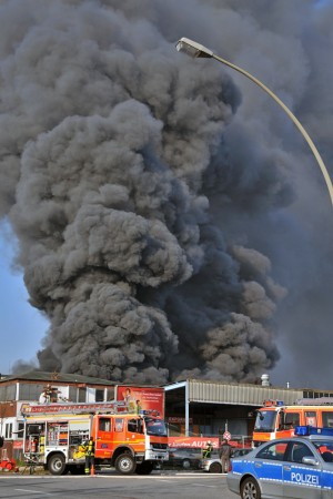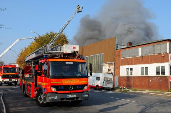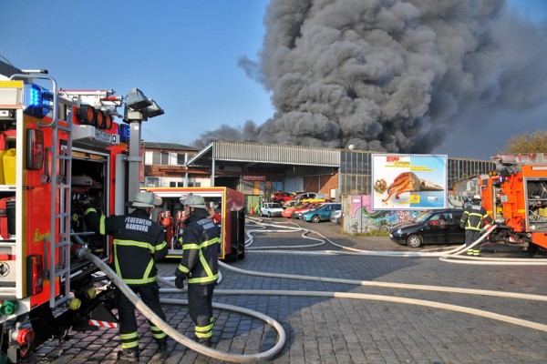 Am Samstagmorgen gegen 9:30 Uhr wurde der Feuerwehr Hamburg eine Rauchentwicklung aus einer Lagerhalle im Gewerbegebiet an der Süderstraße gemeldet.