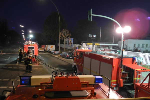 Schon beim Eintreffen der ersten Einsatzkräfte wurde durch die starke Rauchentwicklung die Einsatzstufe auf „Feuer 3“ erhöht und weitere Berufsfeuerwehren und Freiwillige Feuerwehren alarmiert.