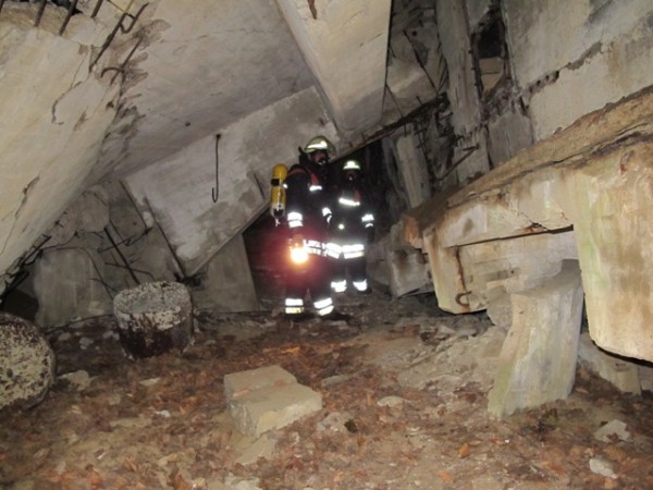 Übungsszenario an diesem Tag war es, dass sich nach einer Explosion eine verschüttete Person in einem Bunker befindet.