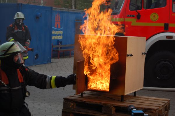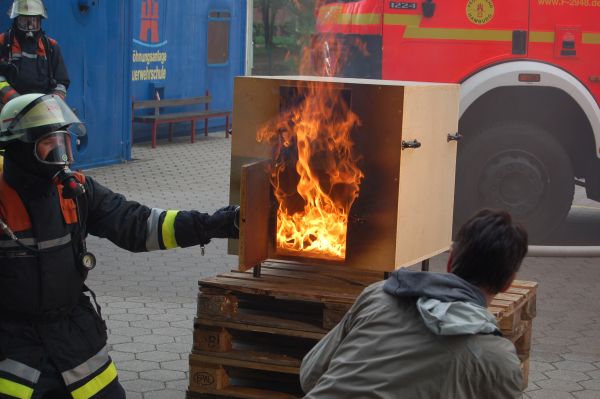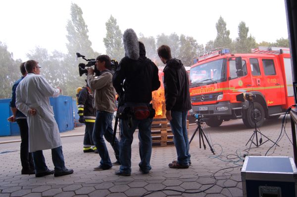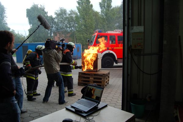 Somit wurde u.a. dem Filmteam Aufnahmen während einer Wärmegewöhnungsausbildung im "Flashover-Container " der Feuerwehrakademie ermöglicht. Damit sollte es aber noch nicht genug sein. Um den Zuschauern einen Flashover genauestens erklären und demonstrieren zu können, suchten die Filmexperten nach einer Möglichkeit eine Rauchgasdurchzündung "steuerbar" zu erzeugen. Nur so kann der Flashover für die Zuschauer zu Hause aus allen Perspektiven, von der Entstehung bis zur Durchzündung, mit der Kamera eingefangen und von den Moderatoren erklärt werden.