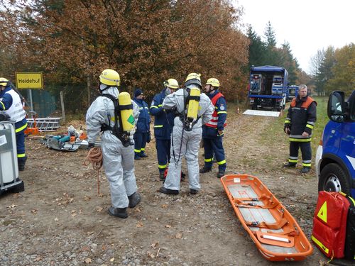 Hier gab es für die Kameraden vom THW verschiedene technische Aufgaben zu bewältigen. Dieses geschah zum Teil unter Maske/Filter bzw. unter Chemikalienschutzanzug.