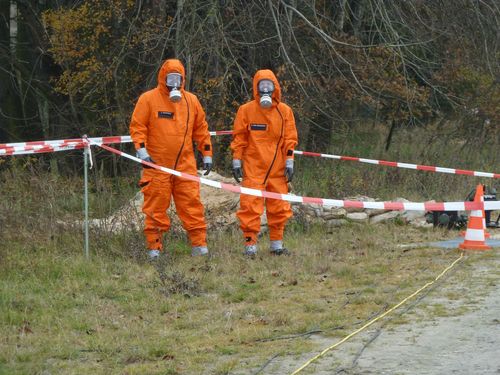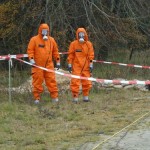Für uns bestand die Aufgabe darin, die eingesetzten Trupps nach der Übung zu dekontaminieren und auf eventuelle Verunreinigungen zu testen. Hierbei wurden dann auch die Probestrahler gefunden, die bei einigen Kräften versteckt wurden.