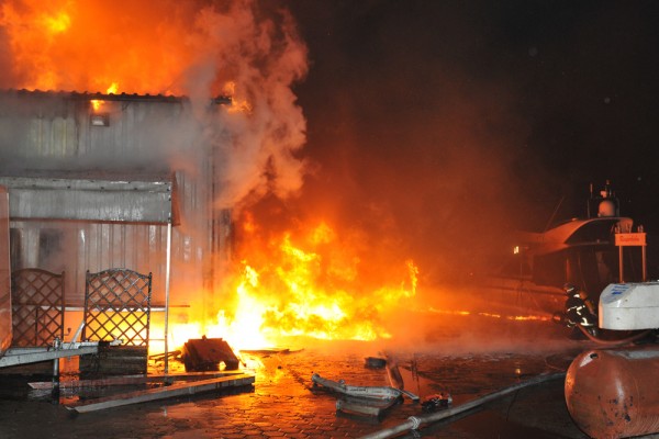 Eine sieben Meter lange Yacht, die am Steg lag, fing ebenfalls Feuer. Erneut wurde eine Lage auf „Feuer 6“ (2x innerhalb dieses Monats)erhöht und weitere Feuerwehren alarmiert. Es wurde ein Bereitstellungsraum eingerichtet und gleichzeitig machten sich ein Löschboot und mehrere Kleinboote zur Unterstützung auf den Weg.