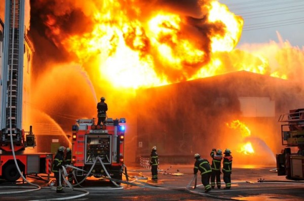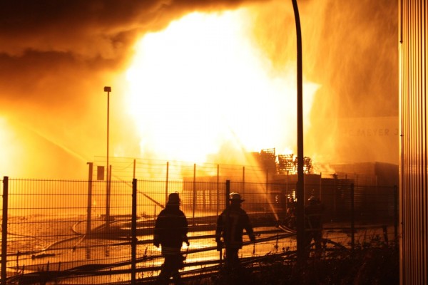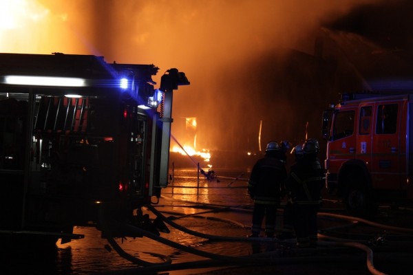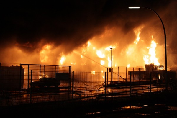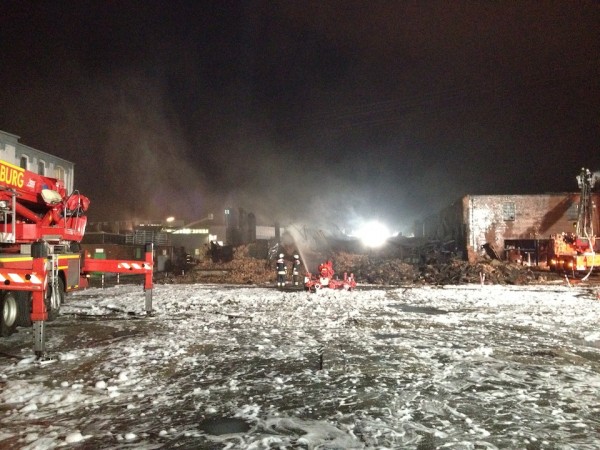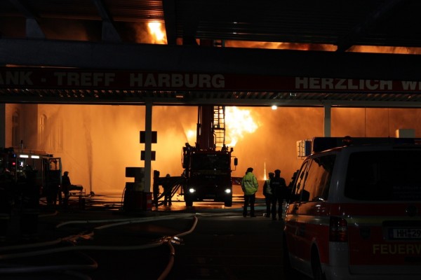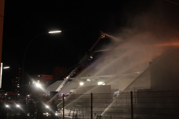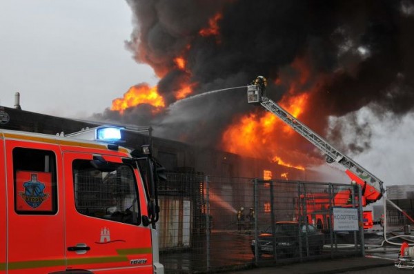 Großfeuer in Harburg – FEU 6 – Lagerhalle musste aufgegeben werden