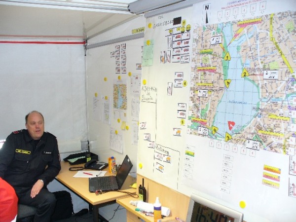So wurde eine sogenannte "Technische Einsatzleitung (TEL)" am Fährdamm mit einem Führungsdienst der Berufsfeuerwehr als Einsatzleiter eingerichtet. Betrieben wurde die TEL durch Personal der Freiwilligen Fernmeldewehren.