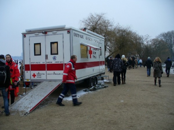 Die Rettungswagen der umliegenden Feuer- und Rettungswachen der Berufsfeuerwehr wurden personell aufgestockt, während das DRK Eimsbüttel für den Sanitätsdienst im Bereich der Außenalster zuständig war. Hierfür wurden fünf Unfallhilfs- und Meldestellen eingerichtet. Für den Transport auf dem Eis waren die Freiwilligen Feuerwehren mit Hilfe von Schlauchbooten und Eisschlitten verantwortlich.