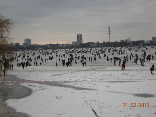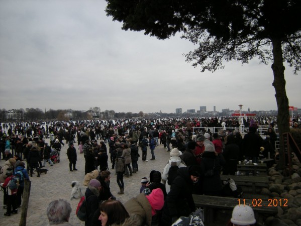 Durchgehend 18 cm blasenfreies Eis waren die Voraussetzung, damit solche Menschenmassen die Außenalster betreten konnten. Die bloße Anzahl an Personen in Verbindung mit dem rutschigen Untergrund sorgten für ein deutlich erhöhtes Gefahrenpotenzial, auf das die Feuerwehr Hamburg reagieren musste.