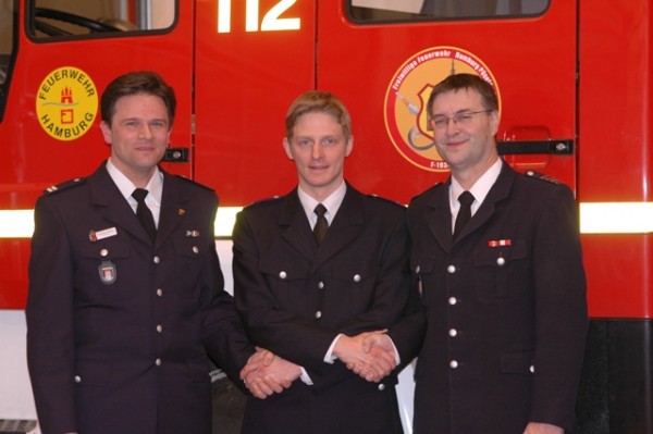 Zu den ersten Gratulanten gehörten, neben den Wehrkameraden, der Bereichsführer Eimsbüttel Jörg Schultze-Scheer und Wehrführer David-Benjamin Märtig.