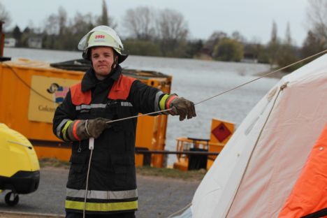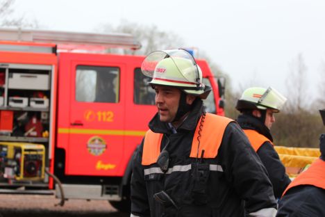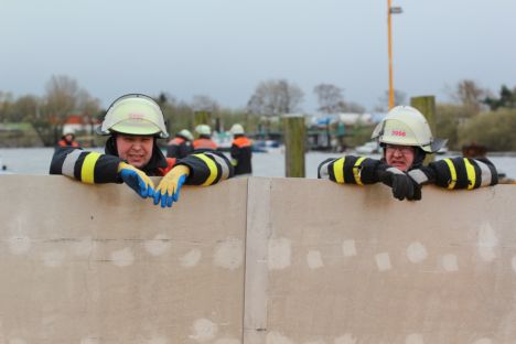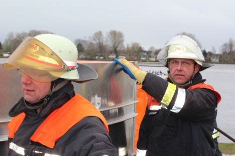 Nach Abschluss des Aufbaus und eines gemeinsamen Frühstücks konnte der aufgebaute Vorlagenbehälter befüllt und die Seperationsanlage in Betrieb genommen werden. Die Übungsleitung zog in der Abschlussbesprechung ein positives Übungsresümee. Die Einsatzkräfte zeichneten sich durch Ruhe und ein hohes Maß an Fachwissen im Anlagenaufbau und im Übungsbetrieb aus. Übungshindernisse, wie eine große Menge Treibgut, das eine naheliegenden Slipanlage blockierte, konnten zügig ausgeräumt werden. Hier traten die über viele Jahre gesammelten Erfahrungen hervor. Diese trugen auch dazu bei, dass die gut gestimmten Kameradinnen und Kameraden bis in den Nachmittag hinein Regen, Graupel und Wind trotzten. Ihnen gebührt der besondere Dank für den erfolgreichen Übungsverlauf.