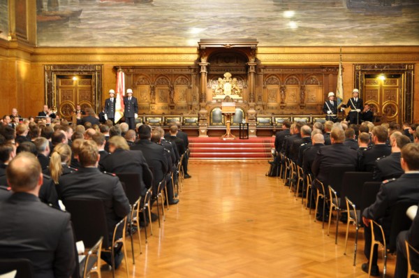 Kameraden der Freiwilligen Feuerwehren Hamburgs wurden im Hamburger Rathaus vereidigt.