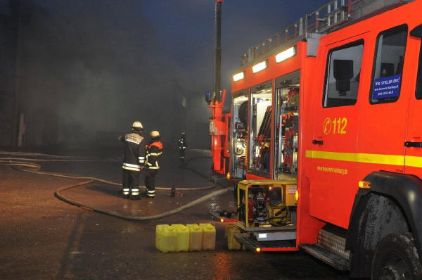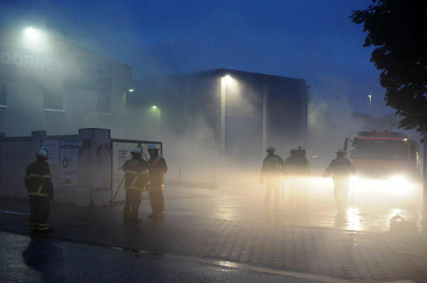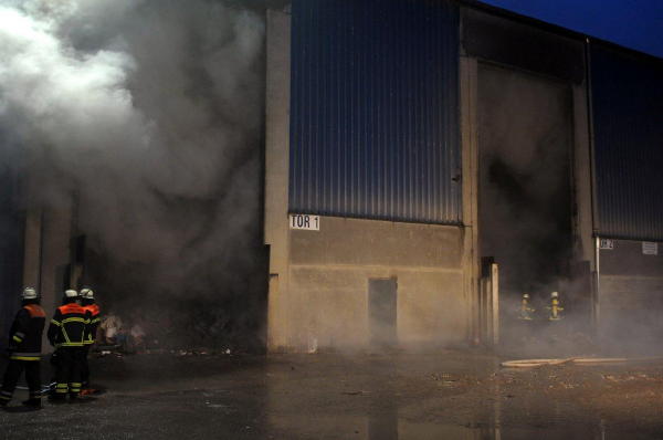 Seit ca. 04.00 Uhr heute morgen sind Feuerwehr und THW an einer brennenden Halle mit Müll und Recyclingabfällen im Einsatz. Sieben Freiwillige Feuerwehren waren beteiligt.