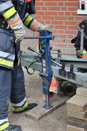 Gegen 10 Uhr startete der zweite Teil der Prüfung. Truppweise mussten die Prüflinge insgesamt 3 Stationen aus den Fachbereichen Erste Hilfe, Technische Hilfe und Brandschutz absolvieren. Neben der Versorgung einer Schnittverletzung an der Hand und dem Anheben eines Anhängers mittels Büffelheber, galt es als Angriffstrupp einen Schaumangriff aufzubauen. Schon kurze Zeit nachdem der letzte Trupp die Stationen abgearbeitet hatte, konnten der Bereichsführer und der Bereichsausbildersprecher die Urkunden überreichen – alle Teilnehmer des Truppmannausbildungslehrganges hatten die Lernerfolgskontrolle erfolgreich bestanden.