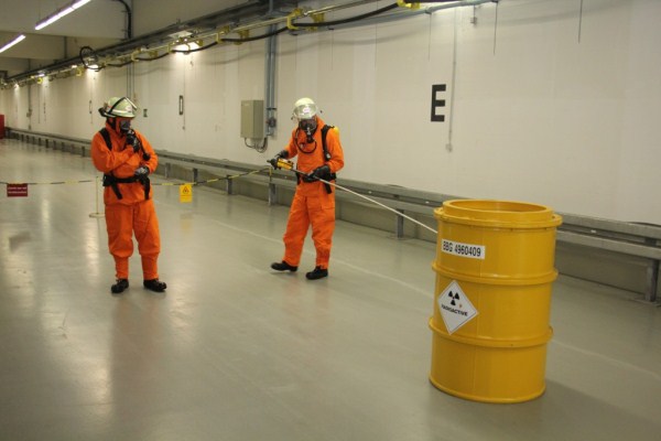 Im Abfalllager für schwach und mittelradioaktive Betriebsabfälle sollte unsere Übung durchgeführt werden. Dort angekommen, erhielten wir vom Leiter der WF unseren Einsatzauftrag: