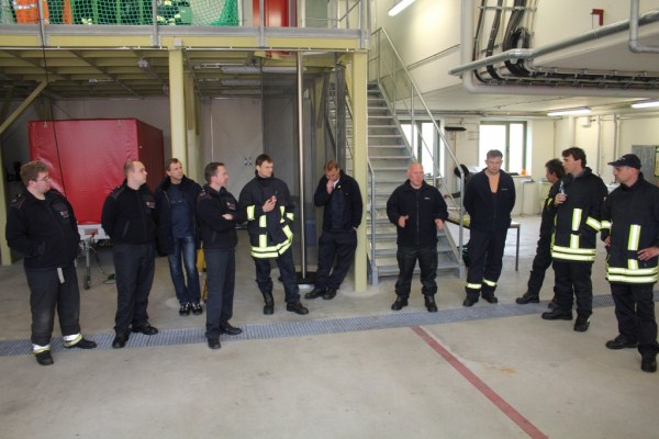 Nach dem Ausziehen der Ausrüstung fuhren wir zurück zum Feuerwehrhaus der WF. Bei Kaffee und Kuchen wurden unsere Stärken und Schwächen erläutert und jeder hatte die Gelegenheit, sein Erlebtes kundzutun. Es folgten angeregte Gespräche und Gedankenaustäusche.