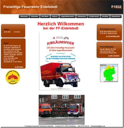 Damit via Internet Informationen über die Arbeit der Einsatzabteilung und des Fördervereins überbracht werden können, ging am 29.07.2012 um 13:00 Uhr die Homepage der FF Eidelstedt online.