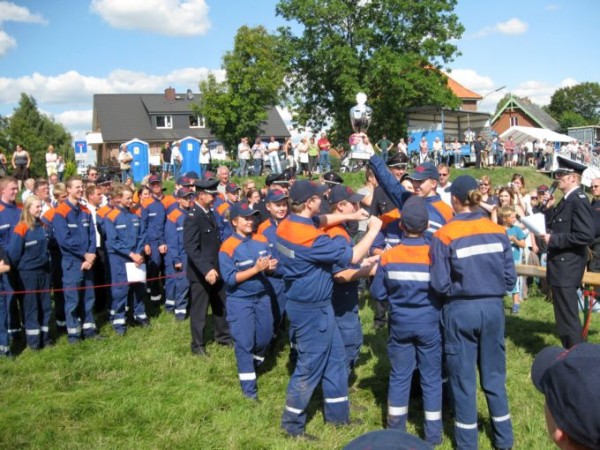 Die FF Krauel hat zum vierten Mal den ersten Platz geholt und kann damit den Wanderpokal gestiftet von der Bergedorfer Zeitung behalten. Als Gewinner wird sie auch nächstes Jahr den Wettkampf ausrichten.