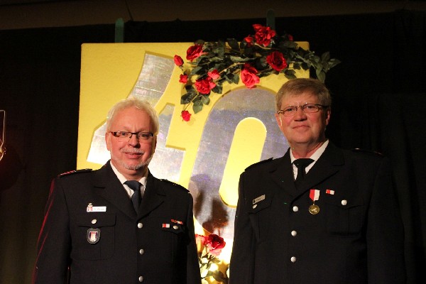 In kurzen markanten Reden, die Höhepunkte und Anekdoten aus 40 Jahren Feuerwehrdienst der Jubilare enthielten, gingen Wehrführer Christian Behn und sein Vertreter auf das Wirken der beiden in der Wehr ein.