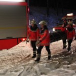 Kurz darauf trifft das THW an der Einsatzstelle ein und der Gruppenführer beginnt sofort mit der Erkundung der Einsatzstelle. Schnell wird eine Rückmeldung an die Leitstelle gegeben, da treffen auch schon RTW und NEF ein. Der Notarzt beginnt mit der Sichtung der Patienten. Das THW baut derweil die Ausleuchtung der Einsatzstelle auf und betreut die Leichtverletzten. Der Patient, den es bei dem Unfall am schlimmsten getroffen hat, ein 11 jähriger Junge, wird sofort mit schweren Hüft- und Bauchverletzungen ins Krankenhaus gefahren. Hier zählt jede Sekunde.
