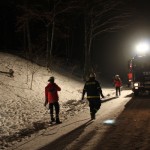 Der Notarzt zieht mit dem Organisatorischem Leiter eine erste Bilanz. 10 Patienten, davon einer eingeklemmt und einer vermisst. So wird gleich ein Trupp der eintreffenden SEG mit Notfallausrüstung und Taschenlampe in den Wald geschickt, um dem Vermissten zu suchen. Einige hundert Meter weiter finden sie ihn völlig unterkühlt und bewusstlos im Wald – unverletzt. Zusammen mit dem THW wird der Patient zur Sammelstelle getragen, die inzwischen eingerichtet wurde. Dort wird er weiter betreut.