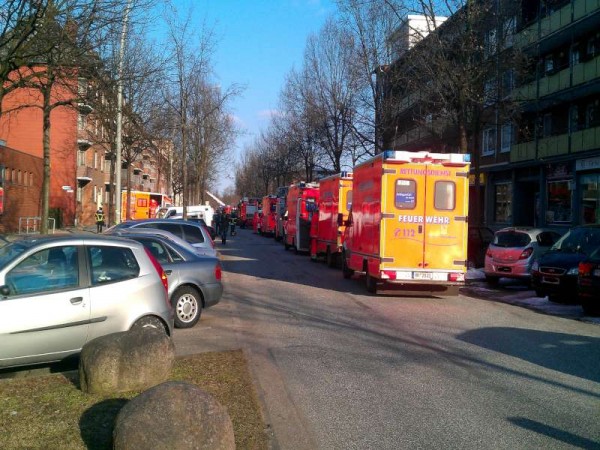 Am späten Sonntagnachmittag wurde die Feuerwehr Hamburg in den Osterbrookplatz gerufen. Hier meldeten mehrere Anrufer Feuer und starke Rauchentwicklung im 4. OG eines Mehrfamilienhauses. Weiterhin sollten mehrere Personen verletzt bzw. vermisst sein.
