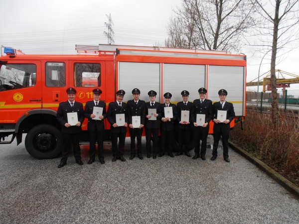 Die Kameradin Anneke Barsch sowie die Kameraden Kjer Dabelstein, Jan Putfarcken, Christian Buhk, Timo Behrens, Jonas Bardowicks, Jonas Donner, Steven Schulze und Sascha Eilk haben diese Prüfung erfolgreich absolviert.