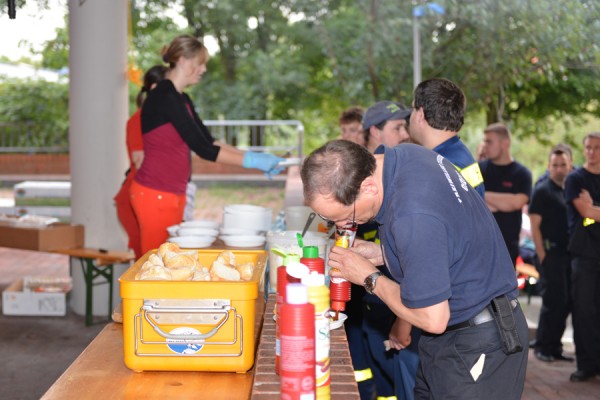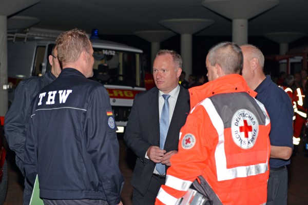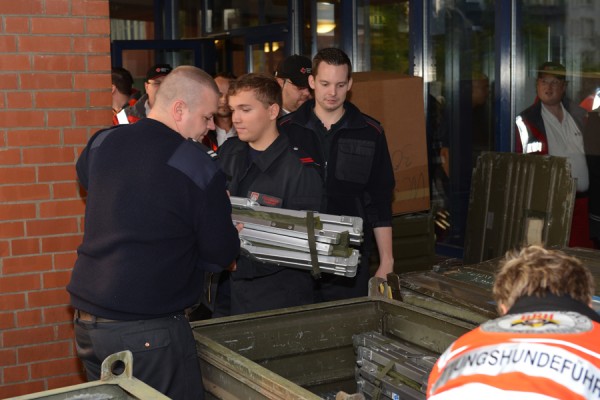 Nach dem Anmelden an der Meldestelle konnten die Klassenzimmer zur Übernachtung mit Feldbetten ausgestattet werden. Während viele den Abend mit einem Steak und einem Softdrink ausklingen lassen, konnten die Führungskräfte den groben Ablauf und die Nutzung der Funkgruppen zur Kommunikation am folgenden Tag besprechen. Senator der Behörde für Inneres und Sport, Michael Neumann, ließ es sich nicht entgehen am Freitagabend vorbei zu kommen.