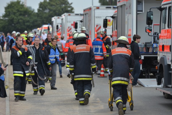 Bereits am Freitagabend trafen sich rund 290 Einsatzkräfte der Freiwilligen Feuerwehr Hamburg, des Technischen Hilfswerks, der Johanniter Unfallhilfe,
