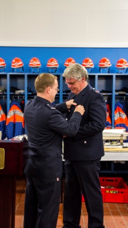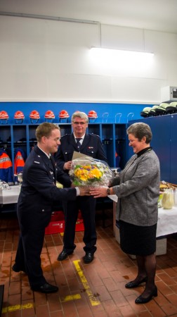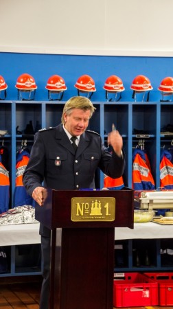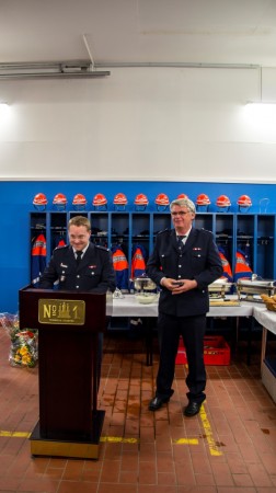 Anschließend fand Wehrführer Matthias Proske nochmal die passenden Worte, um die 40 jährige, sehr verdienstvolle Feuerwehrlaufbahn unseres Kameraden "Wolle" zu würdigen – auch mit ein paar Anekdoten und Geschichten aus der jahrelangen, sehr guten Zusammenarbeit in der FF Billstedt-Horn. Von der Wehr gibt es für Ihn und seine Frau Monika noch ein Wochenende Erholung obendrauf…