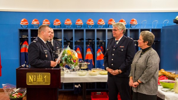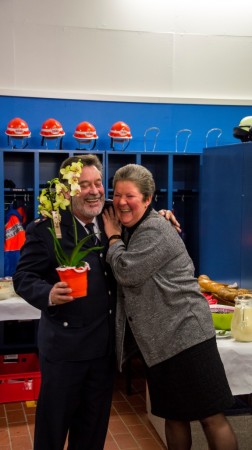 Selbstverständlich dankten alle Redner auch Wolfgangs Frau Monika, die schon so sehr oft auf ihren Mann aufgrund der Vielzahl von Einsätzen und dienstlichen Veranstaltungen verzichten musste, ihn aber stets in seinem ehrenamtlichen Engagement unterstützte und zur Seite stand. Auch brachte sie sich in der Vergangenheit grundsätzlich bei allen möglichen Veranstaltungen aktiv unterstützend in das Wehrgeschehen mit ein.