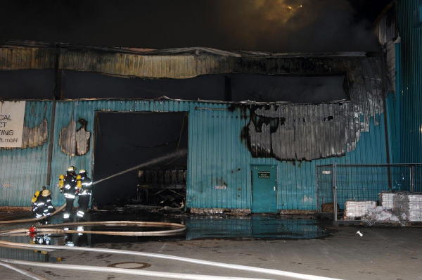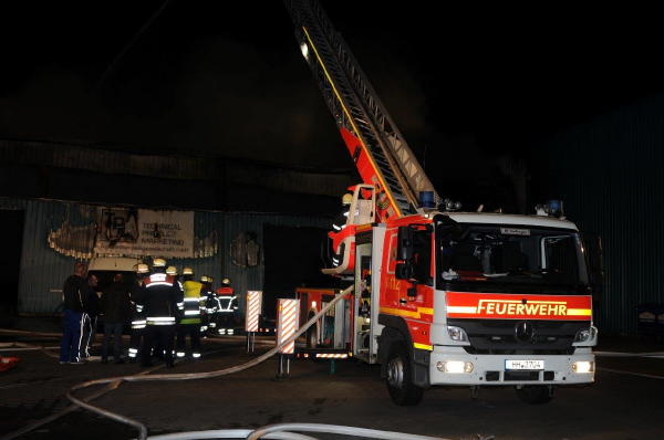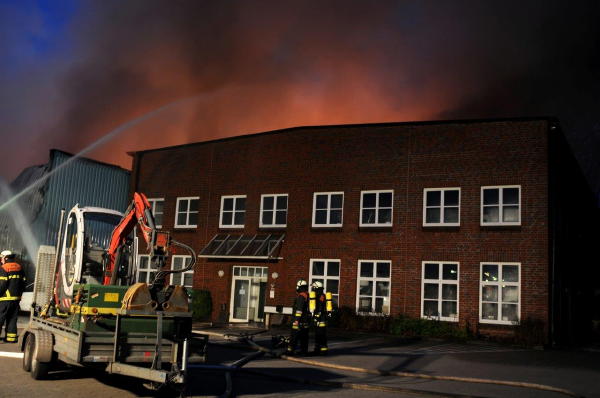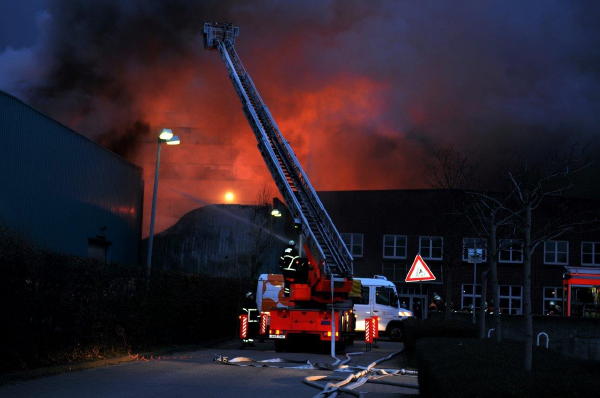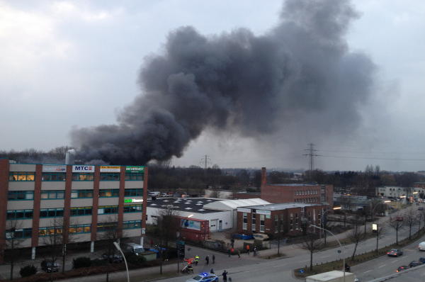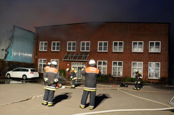 In der Schnackenburgsallee brannte aus noch ungeklärter Ursache eine ca. 30x30 Meter große Lagerhalle in der Autozubehörteile gelagert waren, in ganzer Ausdehnung.