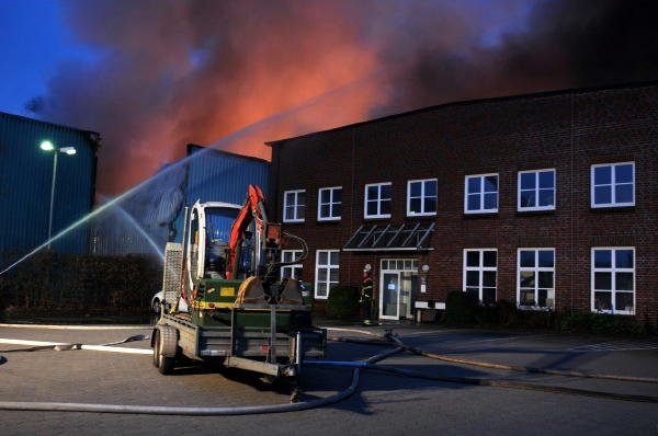 Durch den massiven Einsatz von Personal und Einsatzmitteln konnte ein Übergreifen des Feuers auf unmittelbar an das Brandobjekt angrenzende Bürogebäude, eine weitere Lagerhalle sowie ein Blockheizkraftwerk verhindert werden.
