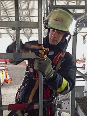 Die Arbeit bei der Feuerwehr ist bodenständig, verlangt aber bei den Tätigkeiten RETTEN, LÖSCHEN, BERGEN und SCHÜTZEN auch in schwindelerregender Höhe einiges von einem ab.