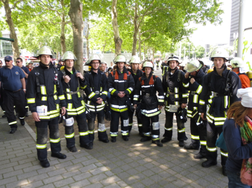 Wie auch im letzten Jahr beim SkyRun in Düsseldorf trafen sie sich vor Ort mit 7 Kameraden der befreundeten Freiwilligen Feuerwehr Meerbusch (bei Düsseldorf) und konnten so 3 Dreiertrupps an den Start bringen.