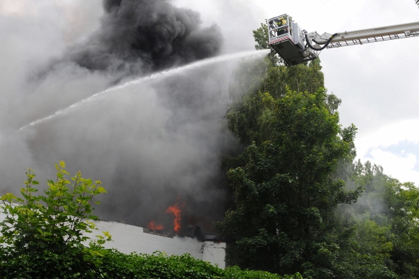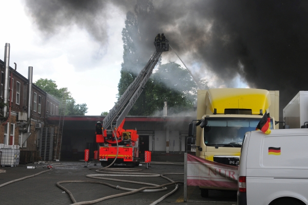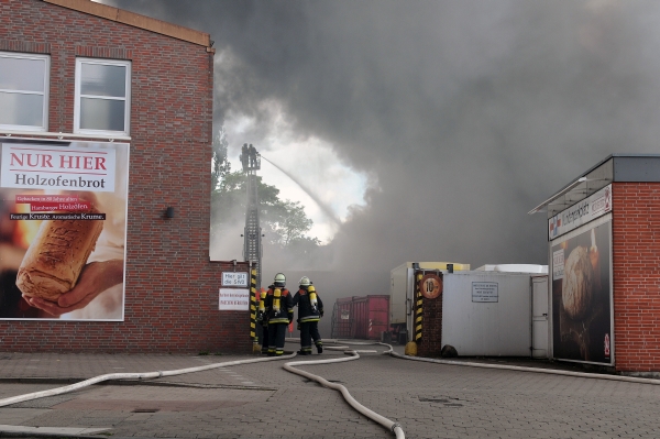 Am Nachmittag des 30.06.14 brach in einem Lagerhallenkomplex einer Bäckerei ein Brand aus, dessen Bekämpfung aufgrund der schnellen Ausbreitung innerhalb von 30 min. die Erhöhung auf die 3. Alarmstufe erforderte.
